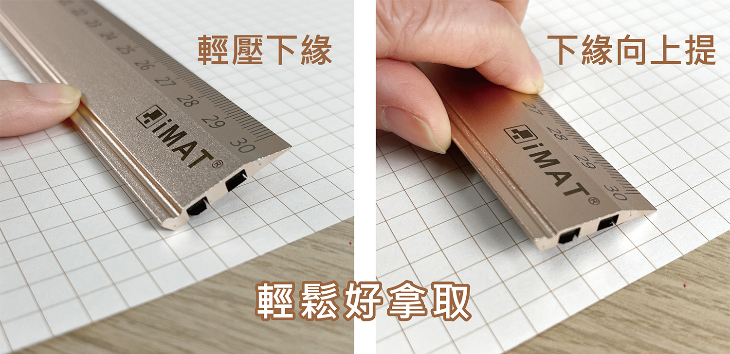 3.「下緣內縮」易取設計,輕壓下緣或下緣向上提起,輕鬆好拿取