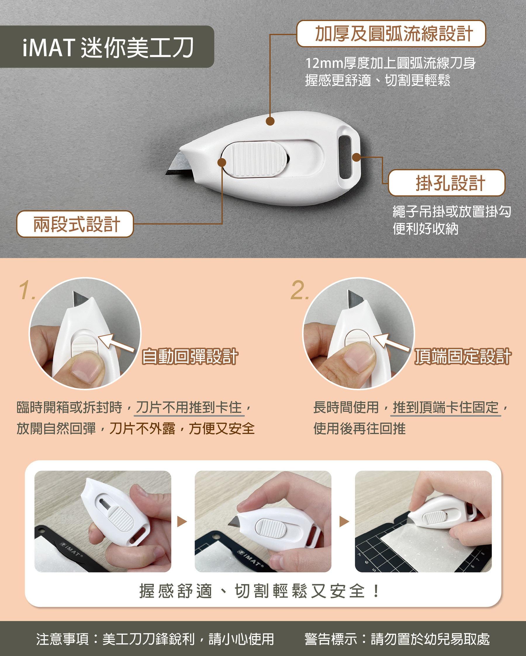 隨行組的小刀改台灣製,安全設計,可固定,可放開彈回