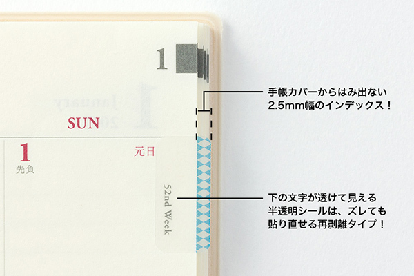 新的索引“Chirat INDEX”。將索引貼紙縮小至2.5 mm,適合帶書衣的筆記本,可以在不損壞索引的情況下整齊地使用它。