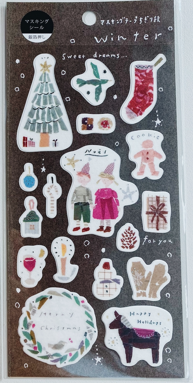 冬季Winter(燙銀) 紙膠帶拼貼風 和紙貼紙 J-245|日本田村美紀