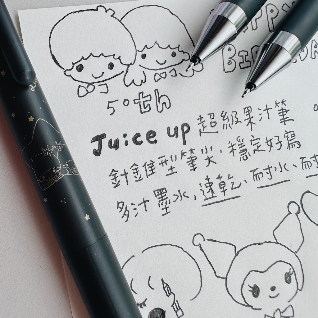 這款限量版套裝包含Juice Up超級果汁筆(霧面黑色筆身+金色線條角色)和一個筆盒