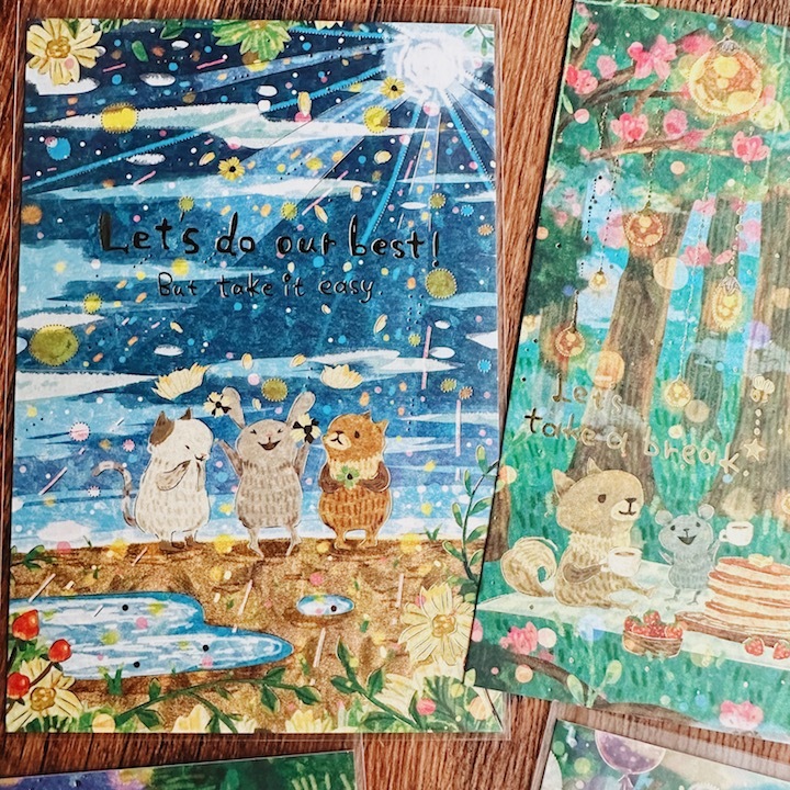 這些明信片以動物為主題,金箔閃閃發光,盡享聖誕樂趣
