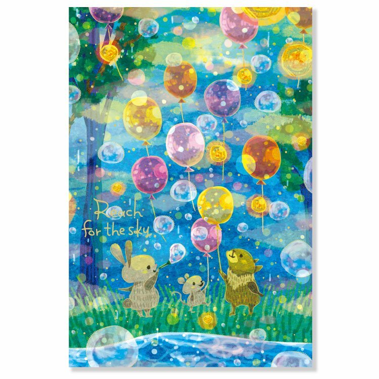 氣球_Muumegu 燙金明信片|日本ACTIVE CORPORATION