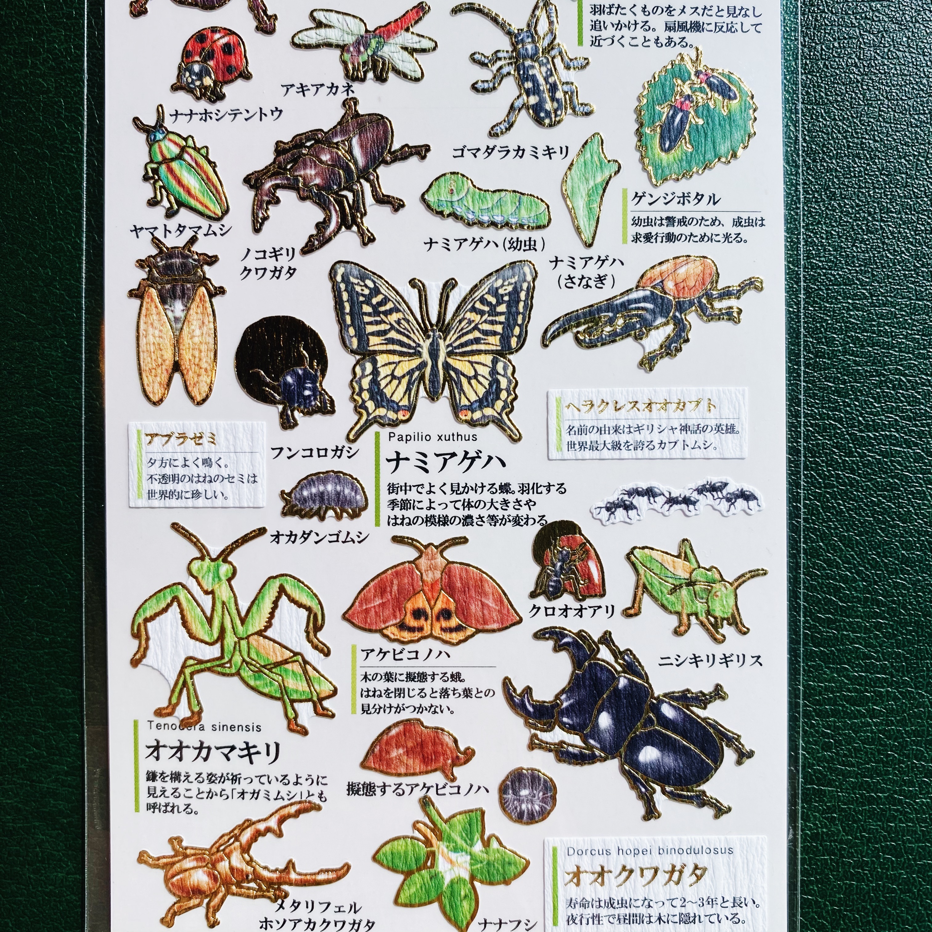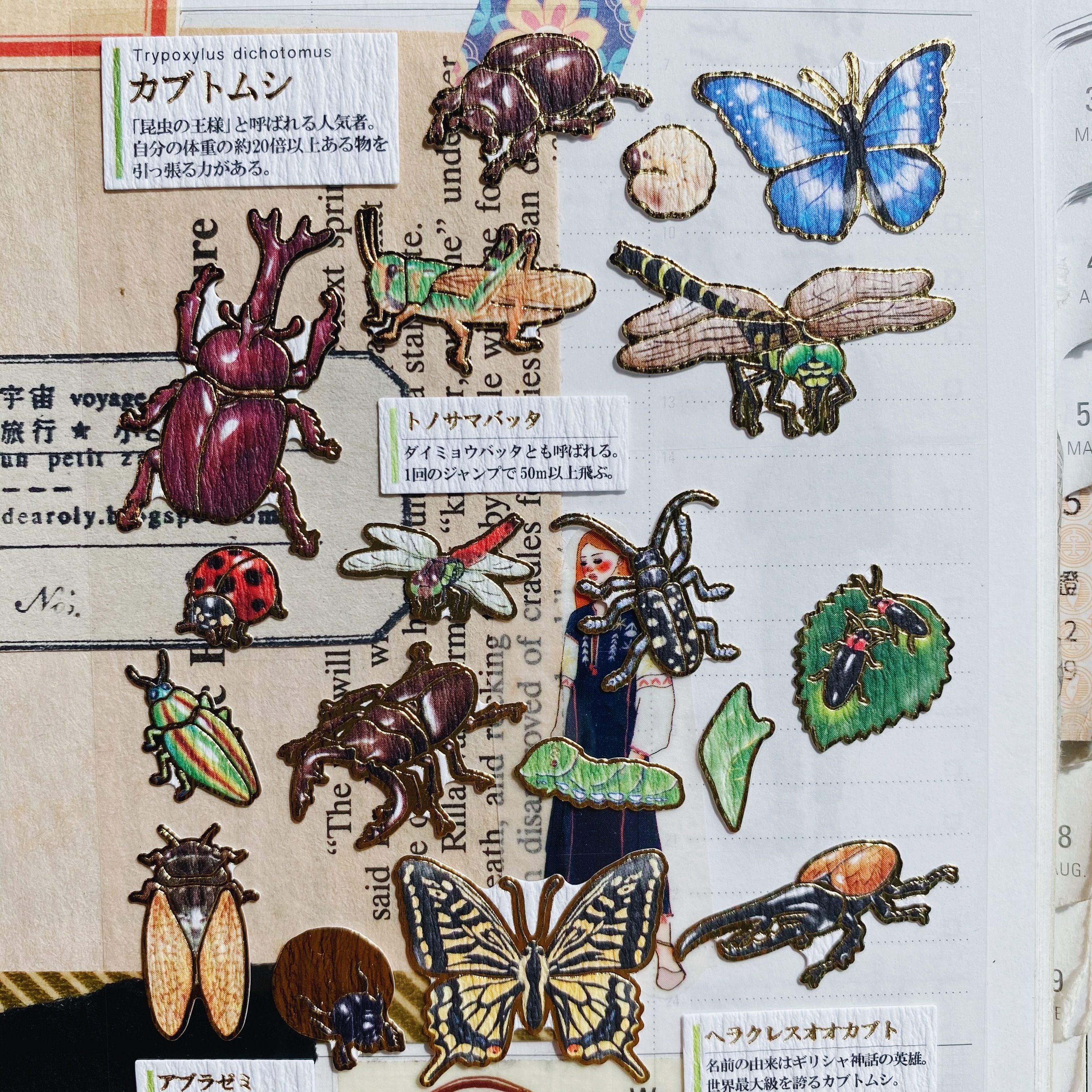 昆蟲 Kamio 大人的圖鑑系列 金箔壓印手帳貼紙