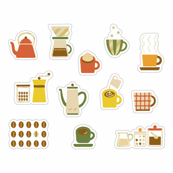 咖啡 36枚 PET金箔貼紙包 |日本WORLD CRAFT