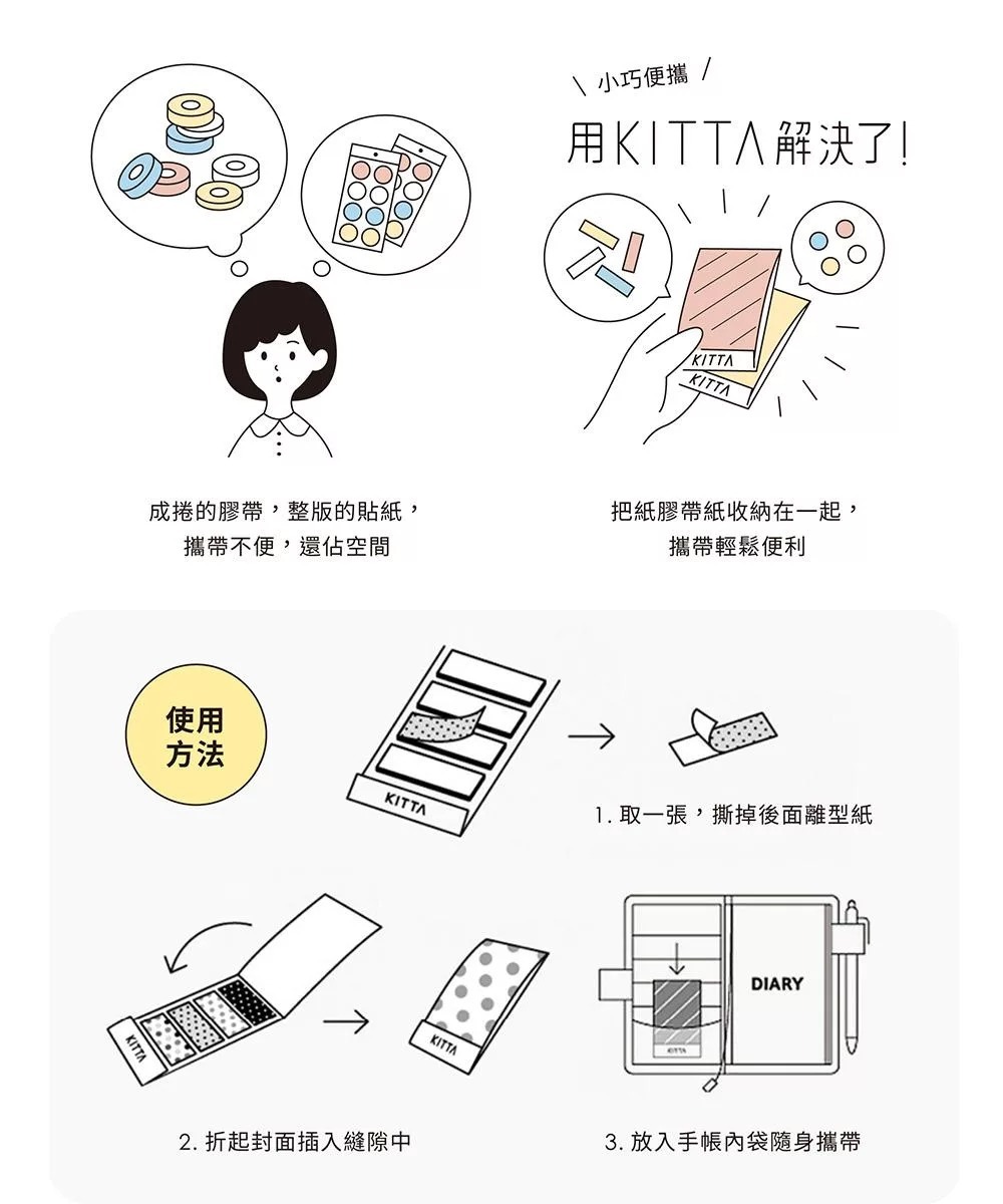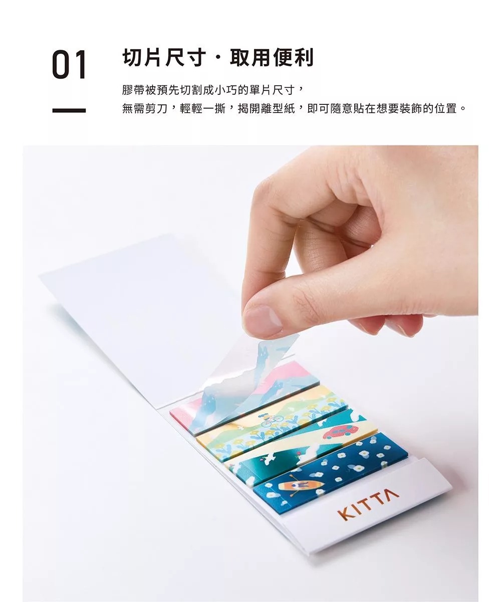 KITTA 為裁切好的紙膠帶,每一段紙膠都有離型紙