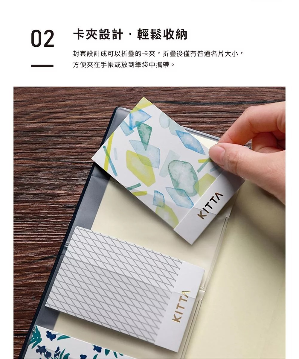 上方的紙卡下摺即可蓋住紙膠帶,方便收納及防護,攜帶出門也不用擔心摺到