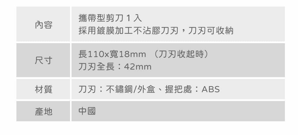 筆型攜帶型剪刀,無須帽蓋的推滑結構,一推就能使用剪刀。刀刃可收納於本體內部,輕巧便攜。