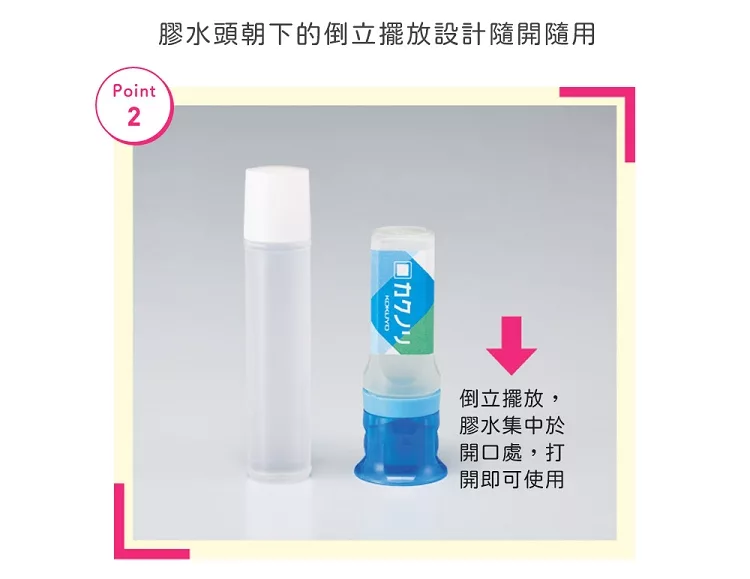 膠水頭朝下的倒立式設計,隨開即用