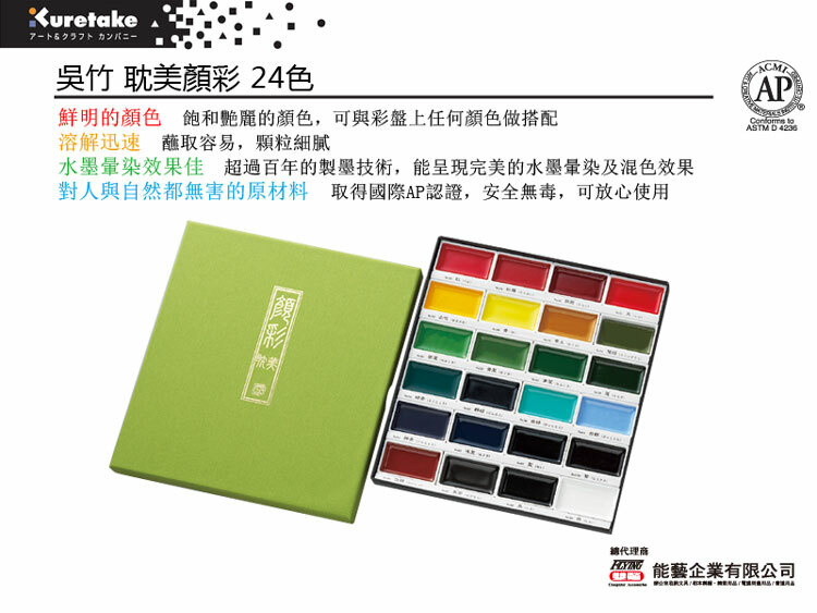 24色耽美顏彩 塊狀水彩|日本吳竹 Kuretake