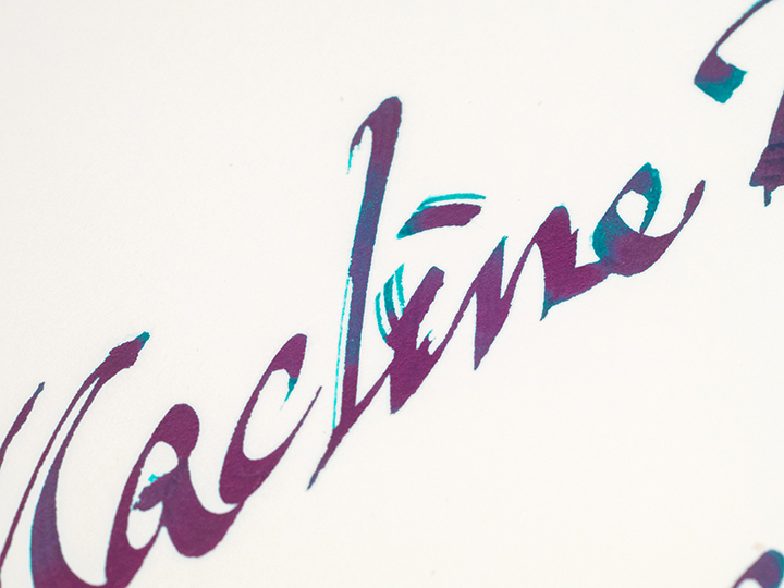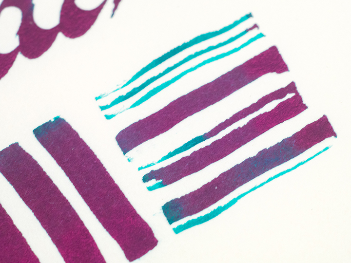 飽和藍綠色墨水帶有獨特的紫紅色Sheen