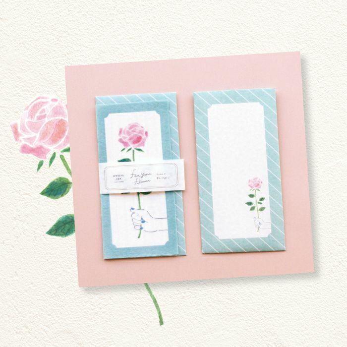 玫瑰 送你一朵花系列 一筆箋信紙信封組|日本古川紙工