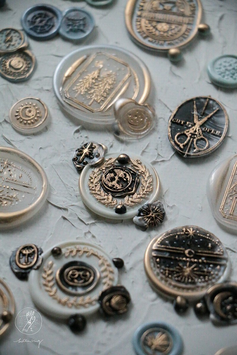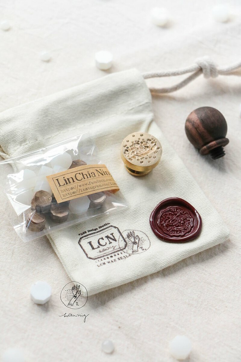 皆附手工蓋印封蠟的收納小布袋x1+一條帶棉芯封蠟或蠟粒一份(顏色隨機)