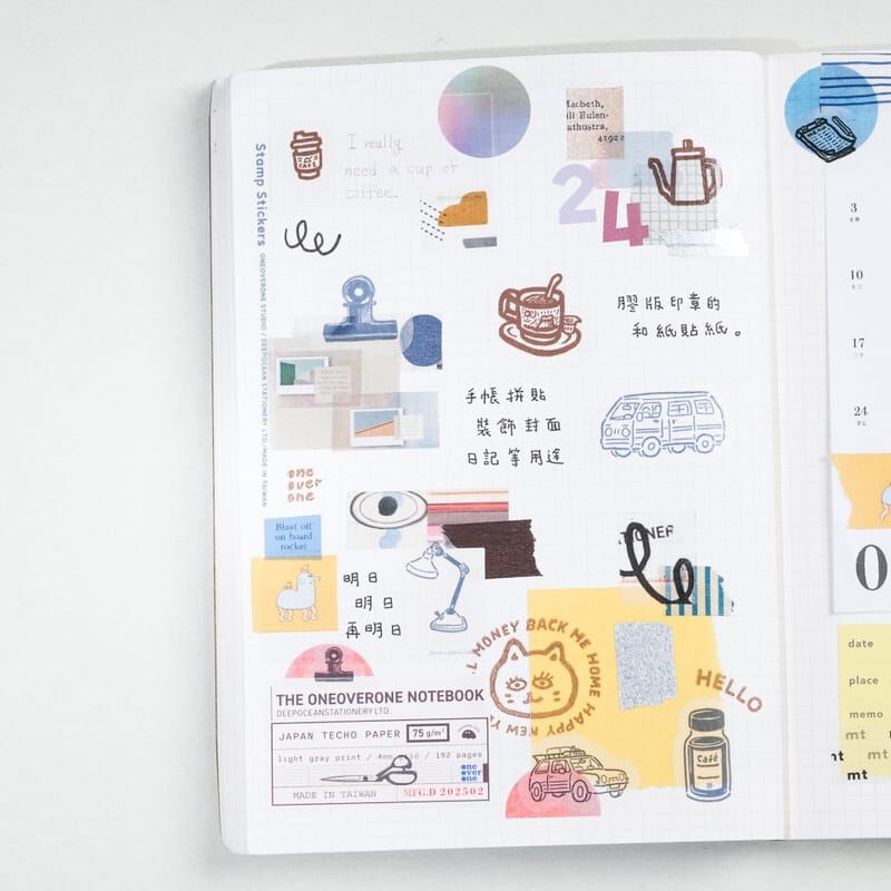 將膠版印章的圖案做成的貼紙,讓沒有蓋章習慣或是材質無法蓋章的狀況使用,拼貼、裝飾、封口等都可以,很實用。