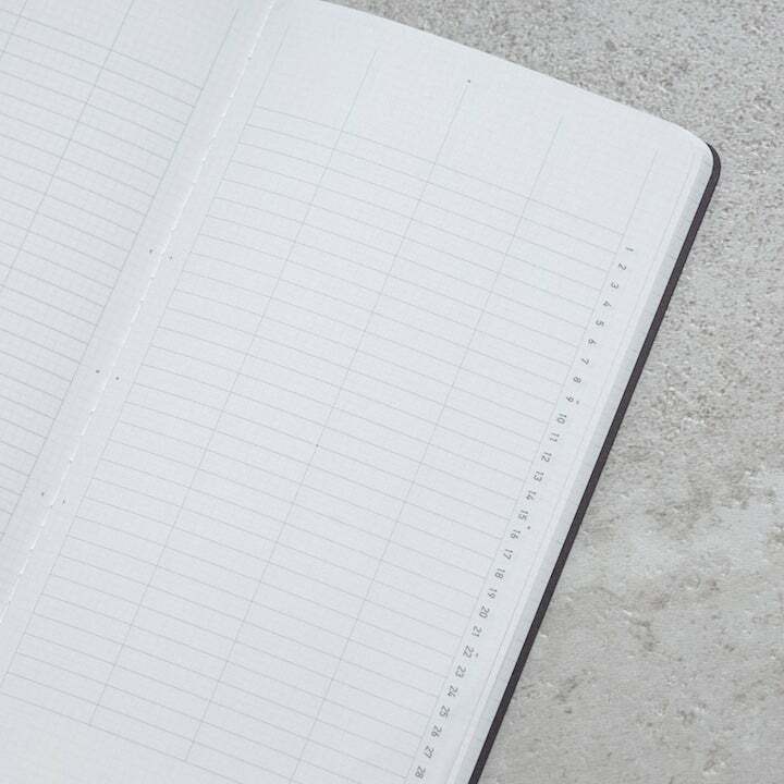 翻開專案計畫頁,書寫空間鋪滿極淡色2mm方格,每一日是4mm的高度,方便繪製線條也可以輕鬆定位對齊。