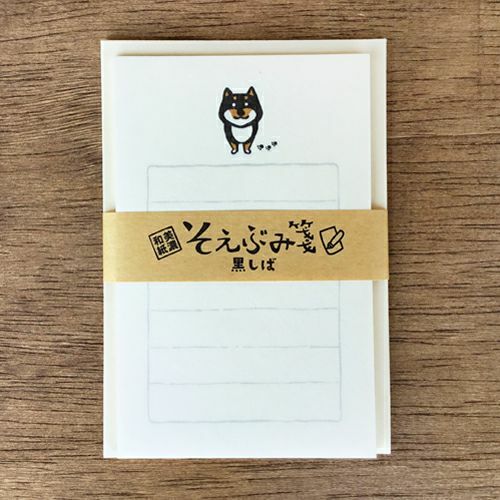 黑色柴犬 和紙便箋信封組|日本古川紙工