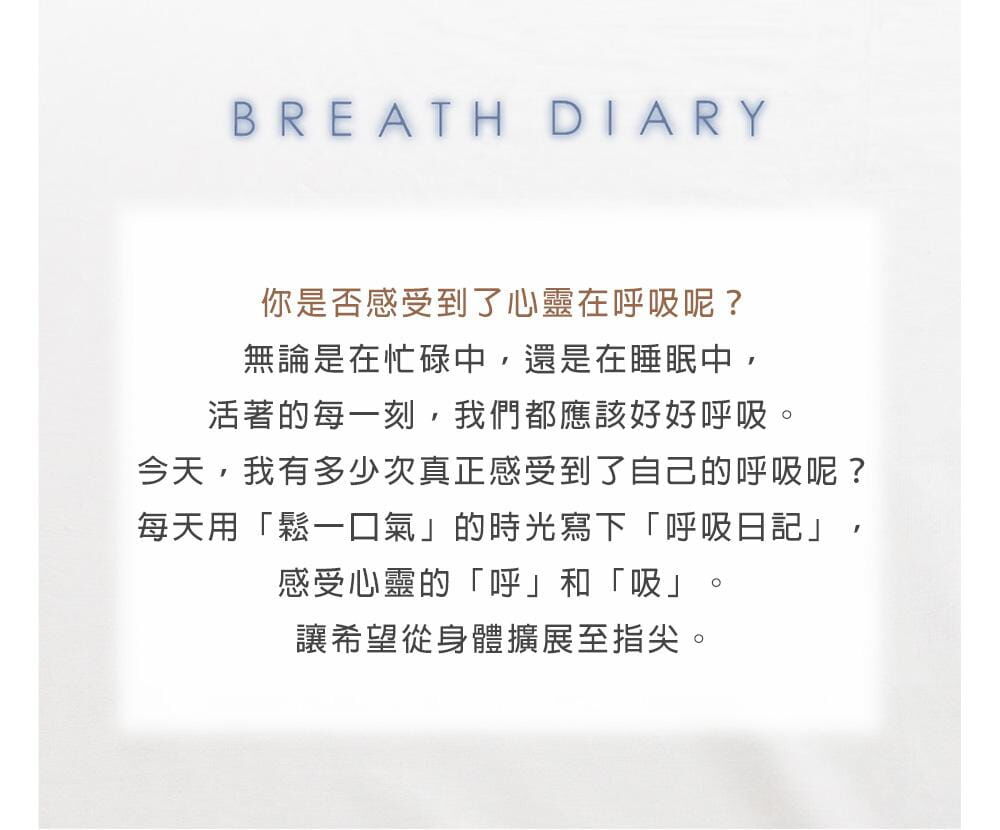 這是一本讓心靈可以緩一口氣的日記本,每天一次讓心靈深呼吸。