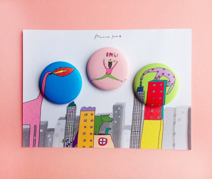 恐龍大鬧市區 3入小胸章|馬卡龍腳趾