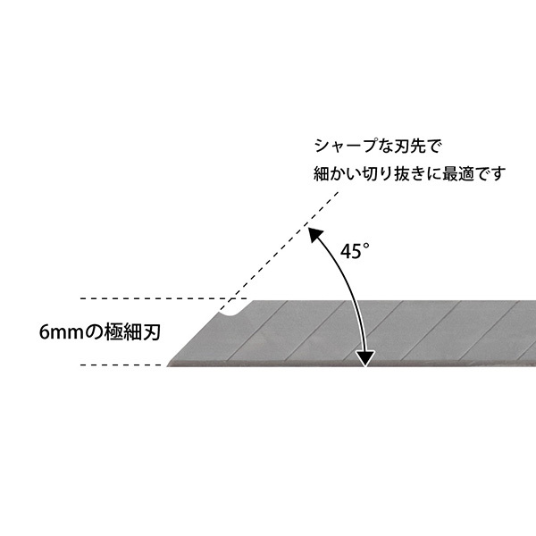 僅6mm厚度的極細刀刃,銳利的刀尖最適合用來裁切細微的地方。