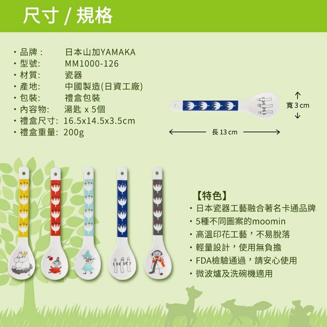 moomin 嚕嚕米 彩繪陶瓷湯匙禮盒5入組|日本 yamaka