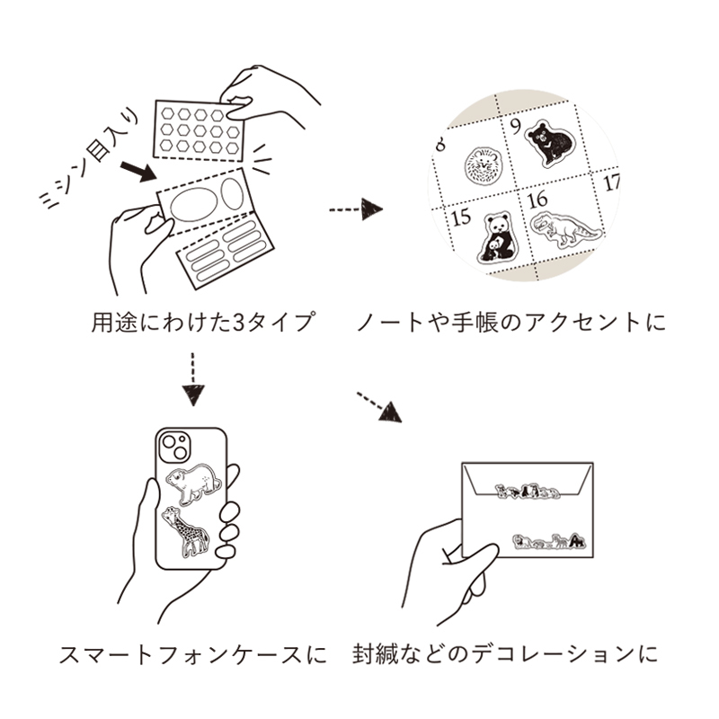 簡單易用的PET透明材質貼紙,單色線條與燙金款