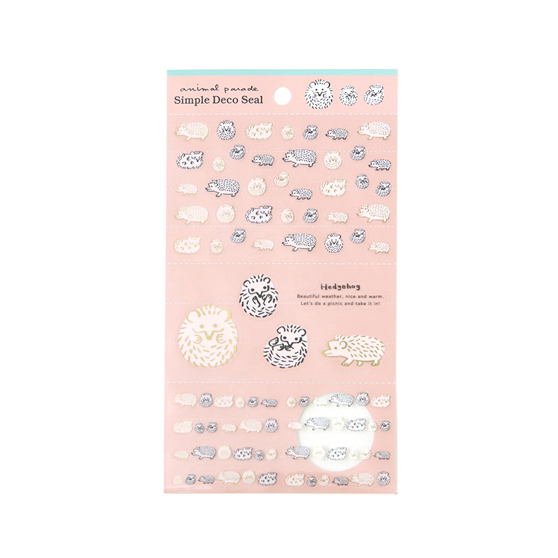 刺蝟 燙金 PET透明貼紙 動物遊行系列|日本RYU-RYU