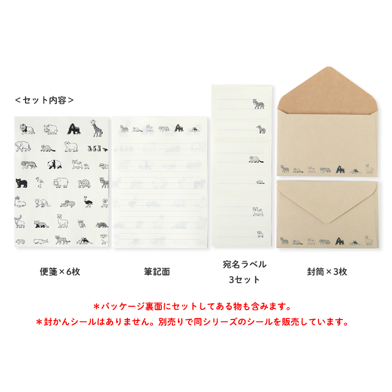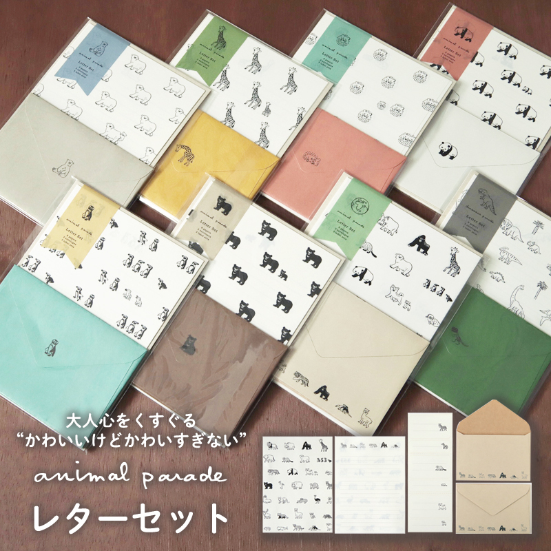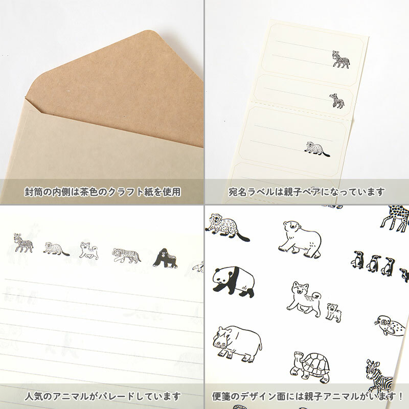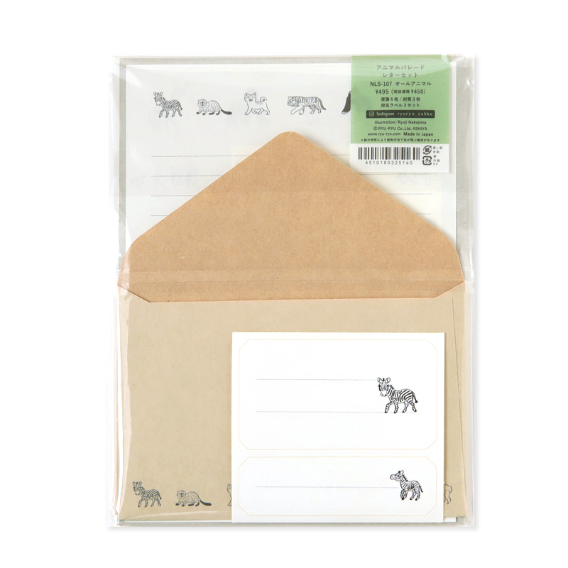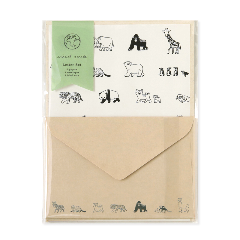 陸地動物 信紙信封組 動物遊行系列|日本RYU-RYU