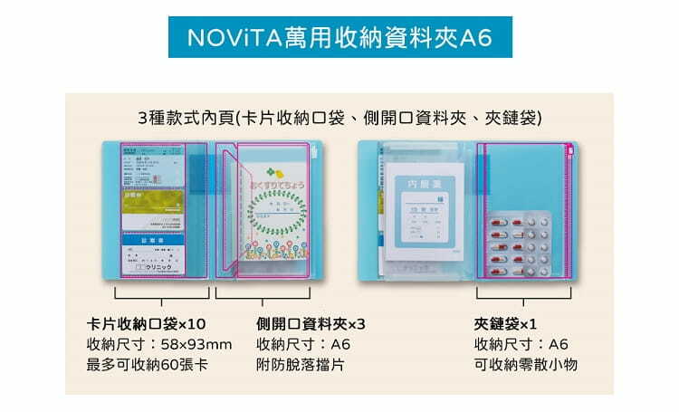 3種款式內頁(卡片收納口袋、側開口資料夾、夾鏈袋)