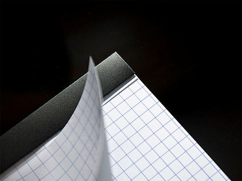 可翻摺上掀式封面,厚實底板連站著寫都方便,紮實加大的騎馬釘裝訂,讓筆記本不易變形,