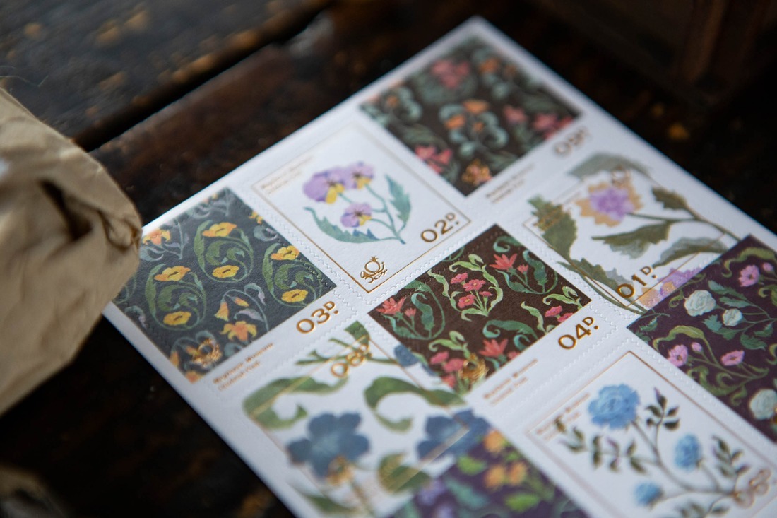 配上細緻的數字與文字燙金完成的郵票貼紙。