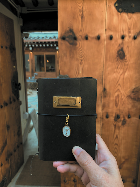你也可以將最喜歡的掛飾掛在皮革綁繩上,並在筆記本封面上貼上貼紙,皮革的紋理、劃痕會隨著使用的時間而有所變化,