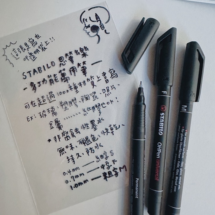 特殊油墨配方幾乎能在任何光滑表面書寫,例如陶瓷、塑料、玻璃、相片等