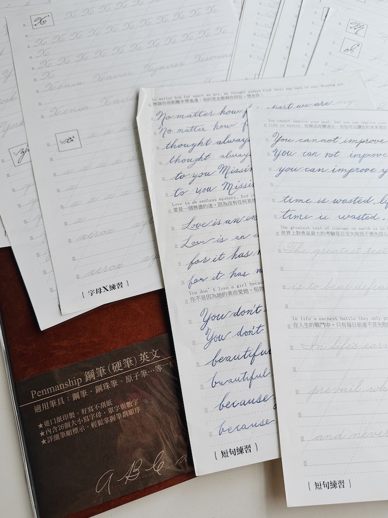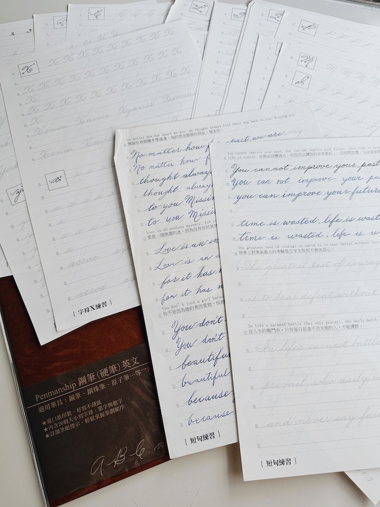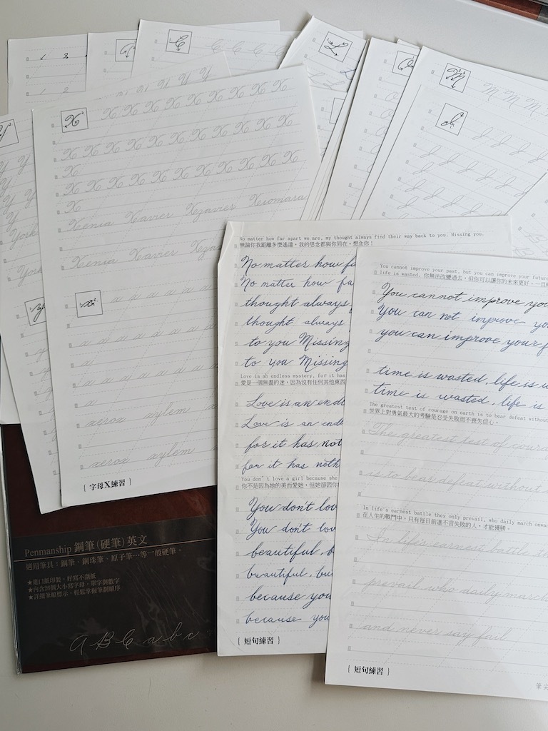Penmanship鋼筆字,適用筆具: 鋼筆、鋼珠筆、原子筆…等硬筆。