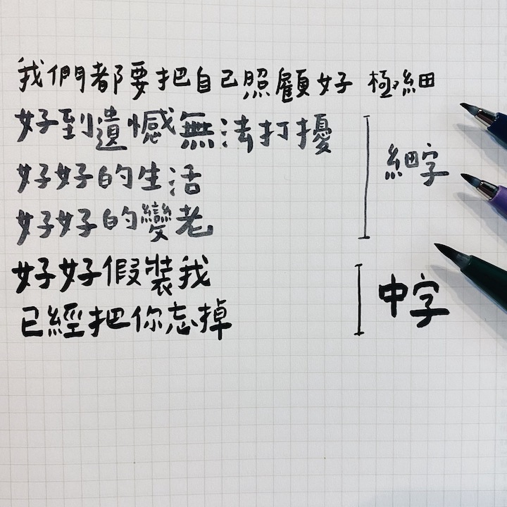 墨液流暢,筆尖彈性極佳,可輕易變化線條粗細變化