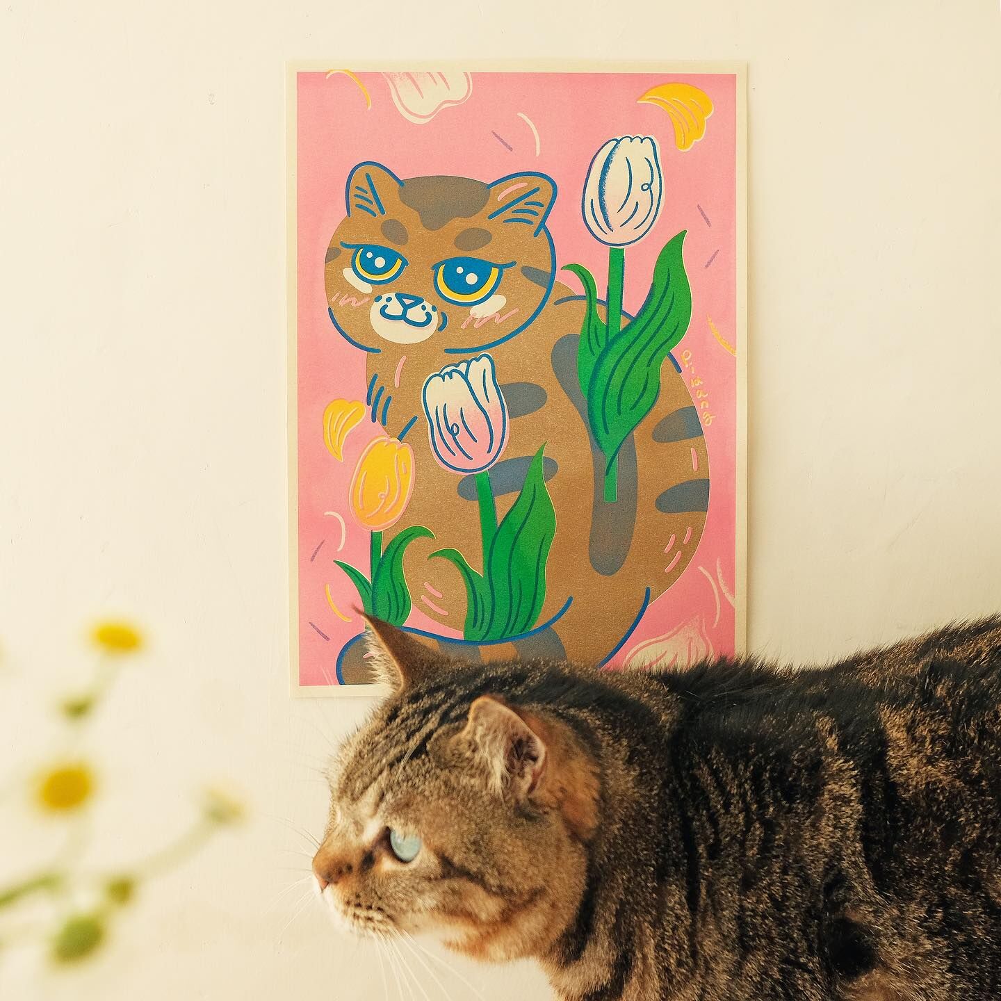 鬱金香 貓嶼花 孔版印刷海報 A4|皮康