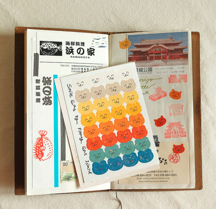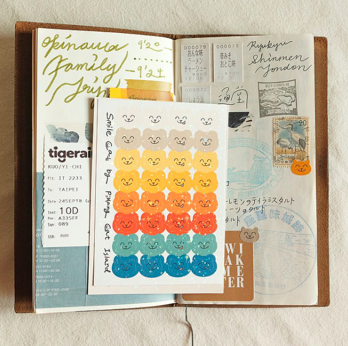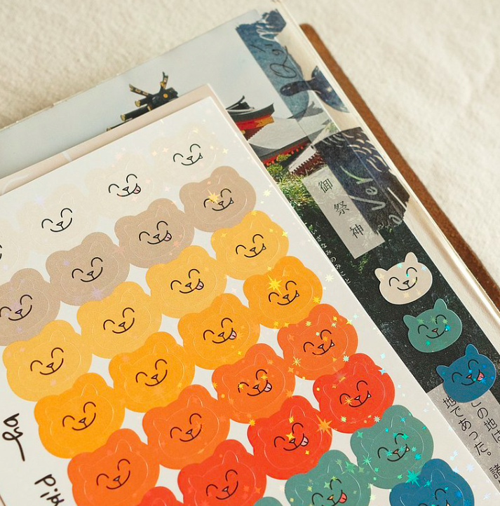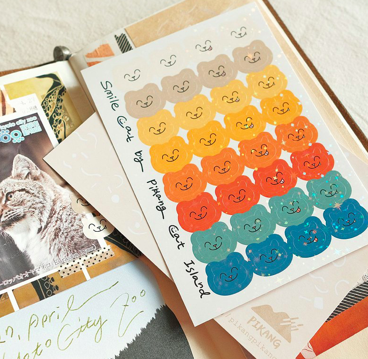 一張裡面有 32 隻小微笑貓,全防水材質除了貼手帳,也可以貼水壺等任何物品,拿來做習慣養成追蹤的小標示也很讚喔!