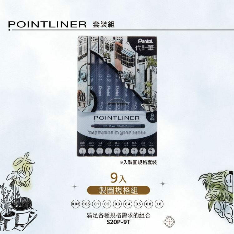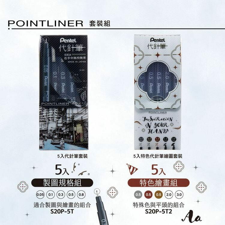 POINTLINER 特別色防水代針筆 5入製圖規格套組|日本PENTEL