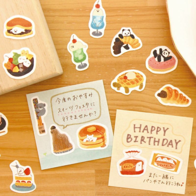咖啡廳 甜點動物系列 和紙貼紙包(20 枚)|日本古川紙工