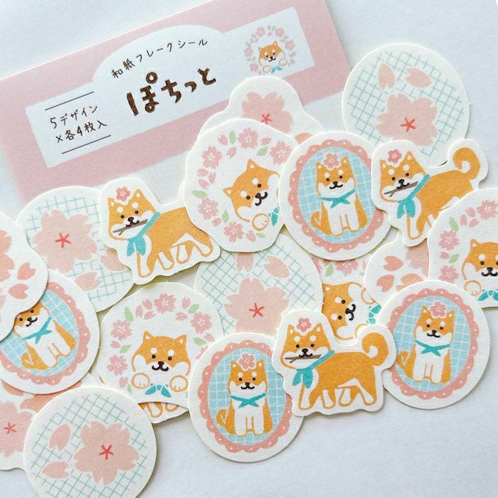 柴犬櫻花 和紙貼紙包(20 枚)|日本古川紙工