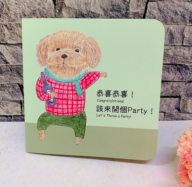 紅貴賓(慶祝卡) 狗日子萬用卡片| 針線球
