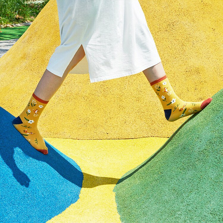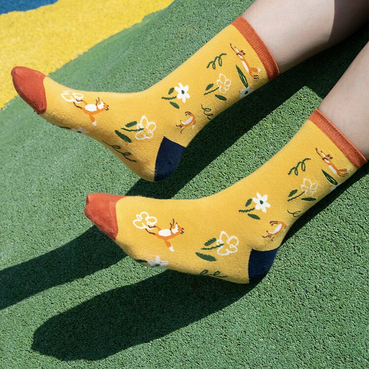 Reiko 芥末黃花卉 刺繡棉襪 |Hello Studio 你好工作室