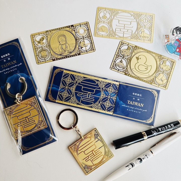 台灣傳統窗花圖案-精緻的金屬蝕刻花窗,搭配設計字體 台灣