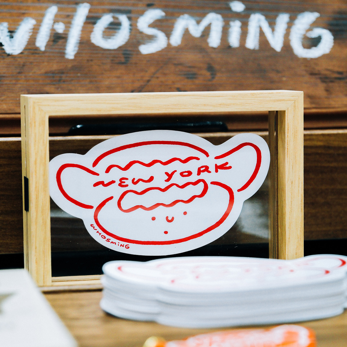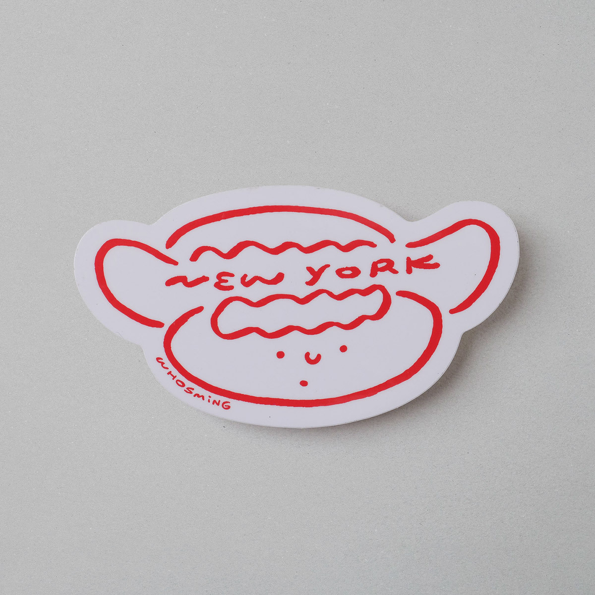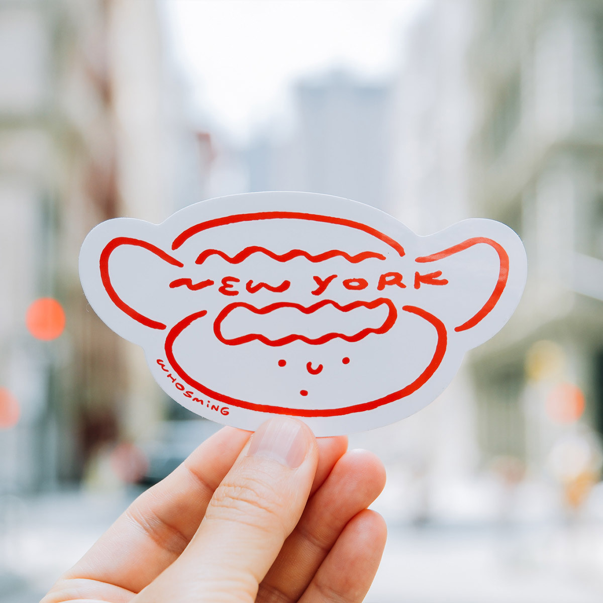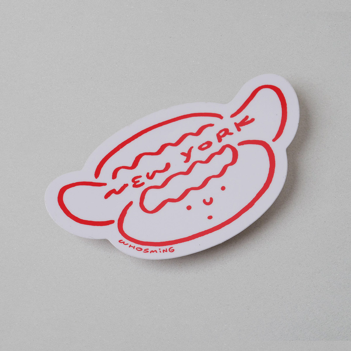 靈感來自紐約經典熱狗,用鮮紅色線條勾勒出象徵紐約代表性文化之一的熱狗,這款貼紙防潑水,可隨自己喜好貼在筆電或是行李箱等做裝飾。