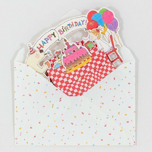 coco醬和她的朋友們出現在桌子周圍慶祝他們的生日!這張卡片讓熱鬧的場景像玩具一樣立體。
