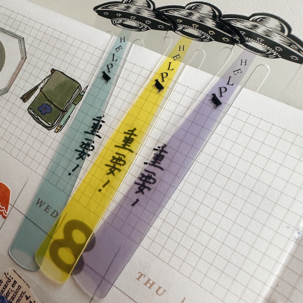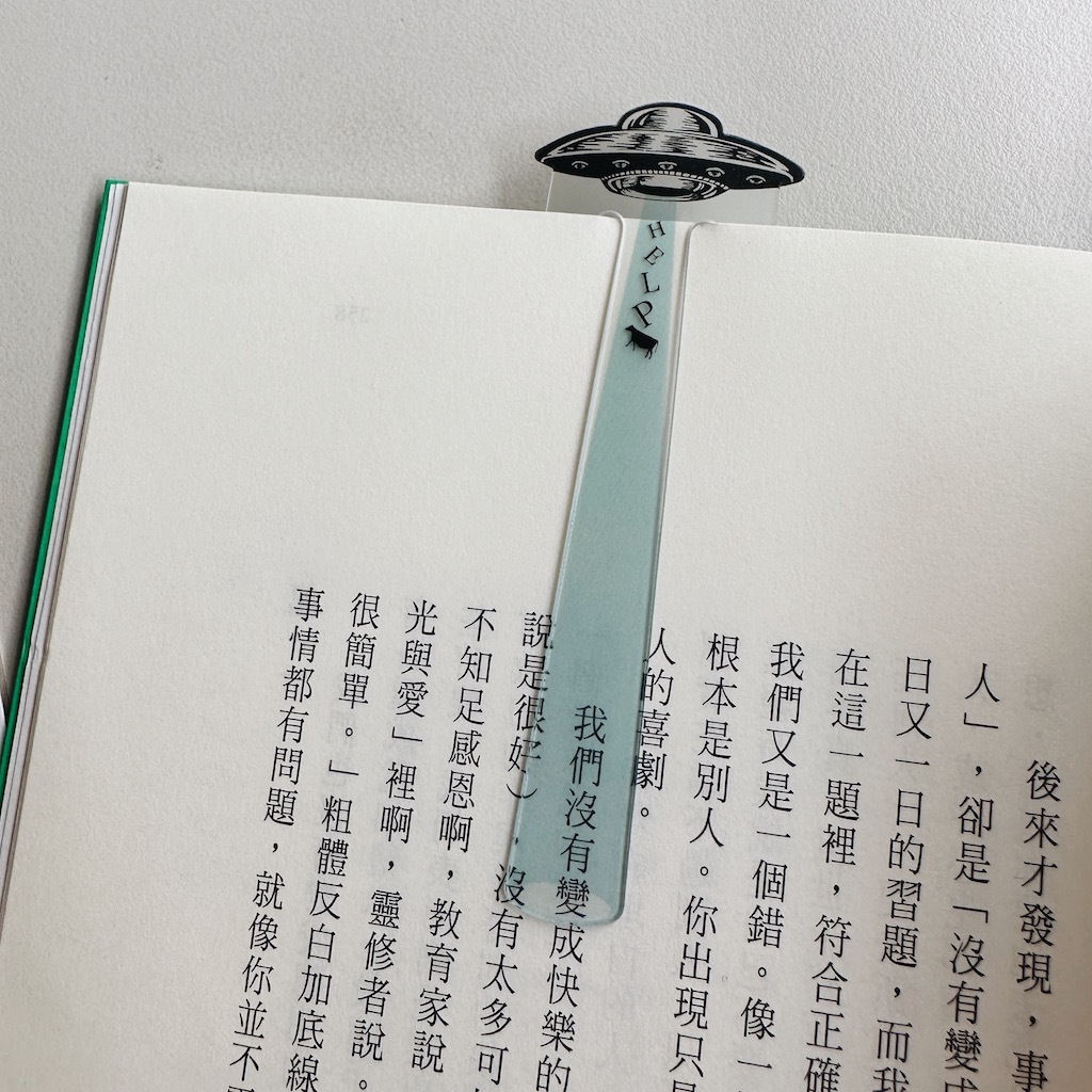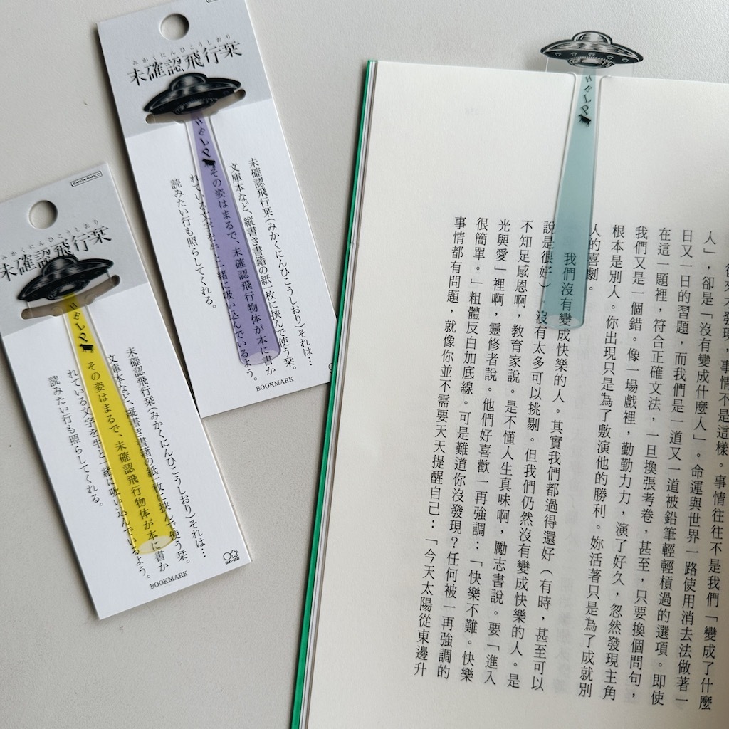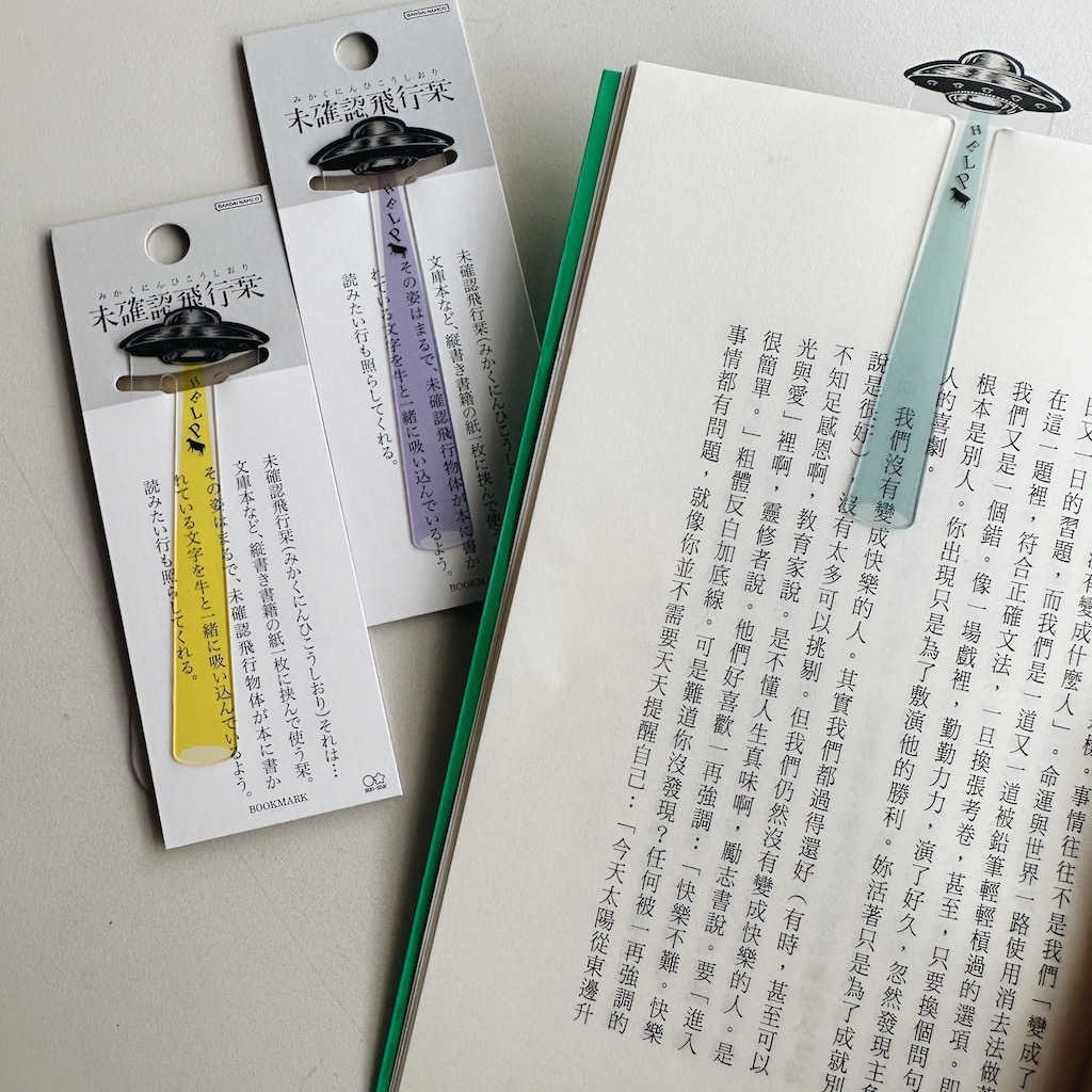 書本裡的UFO!螢光色透明材質的夾式書籤