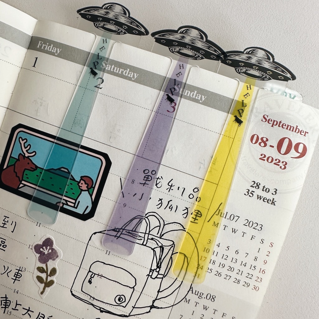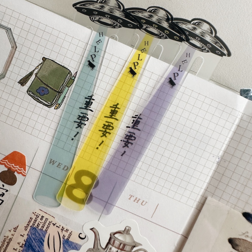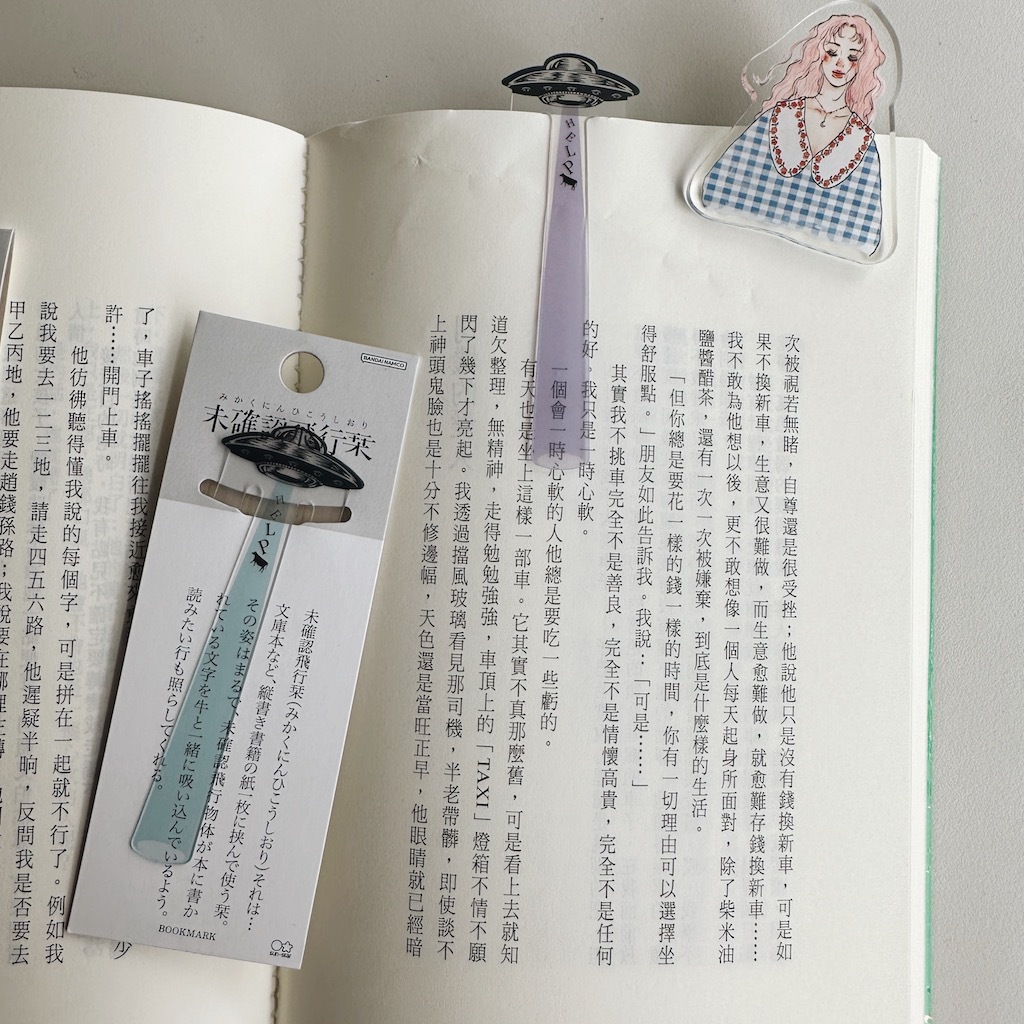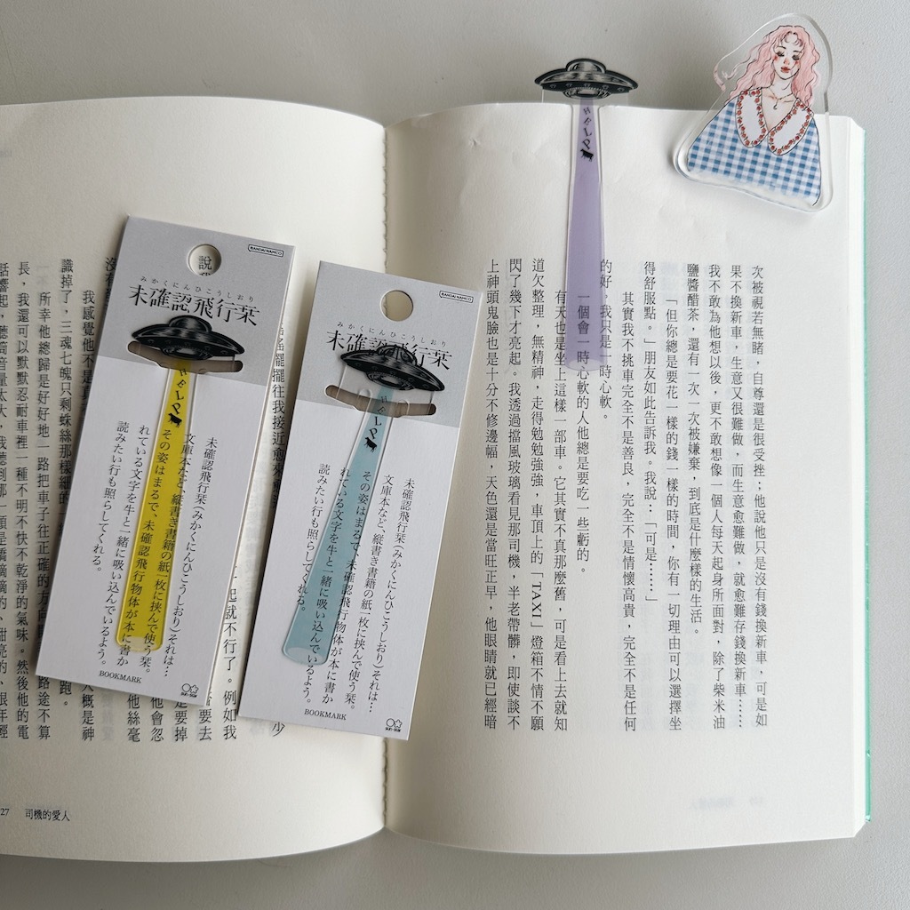 書本裡的UFO!螢光色透明材質的夾式書籤