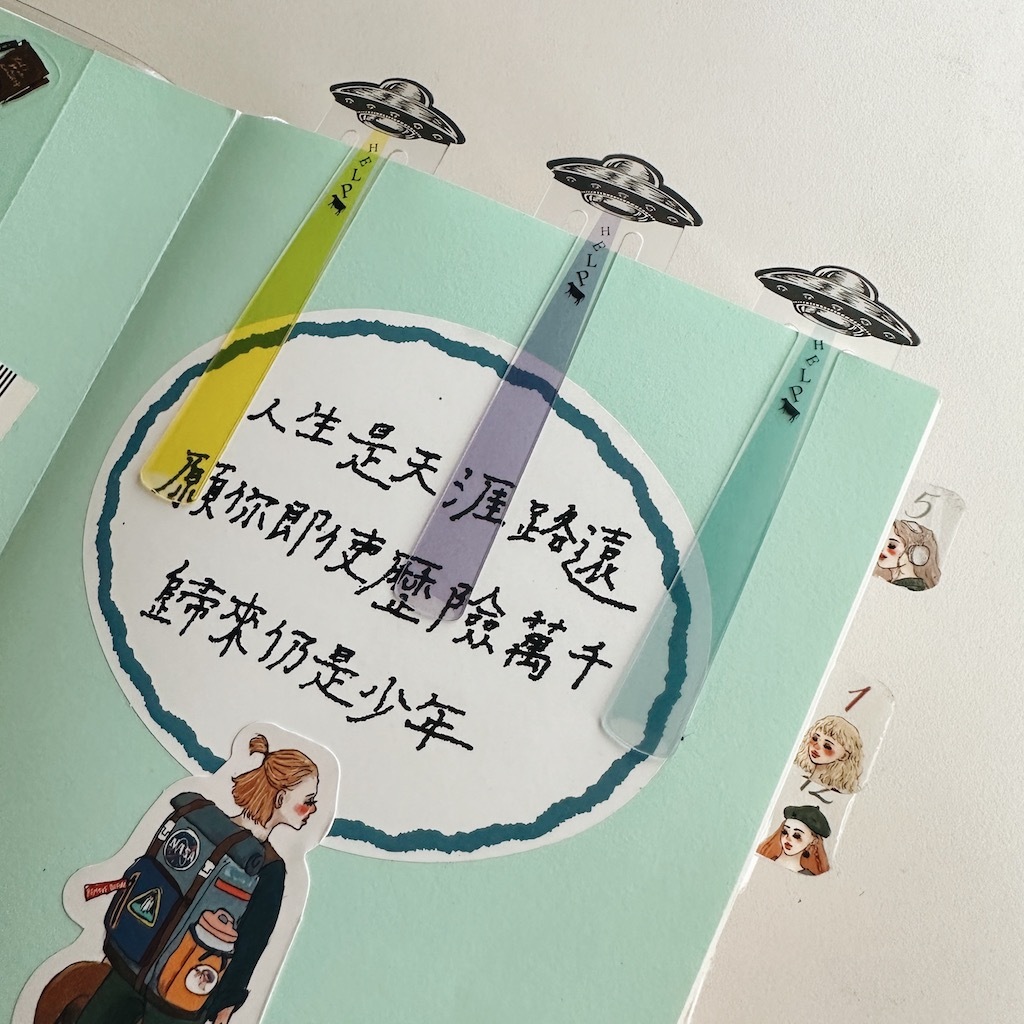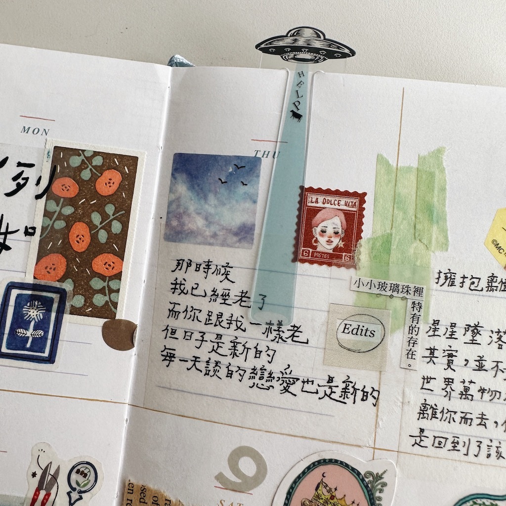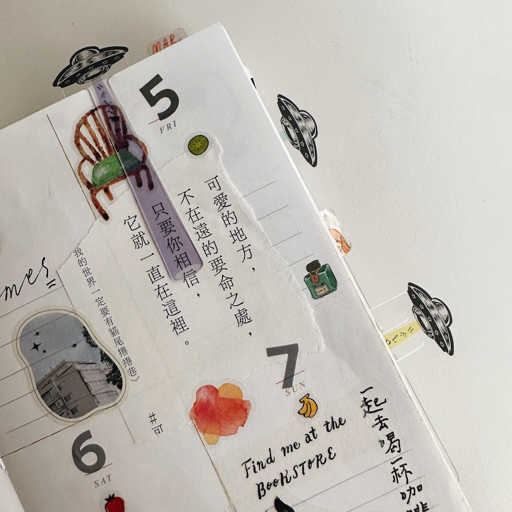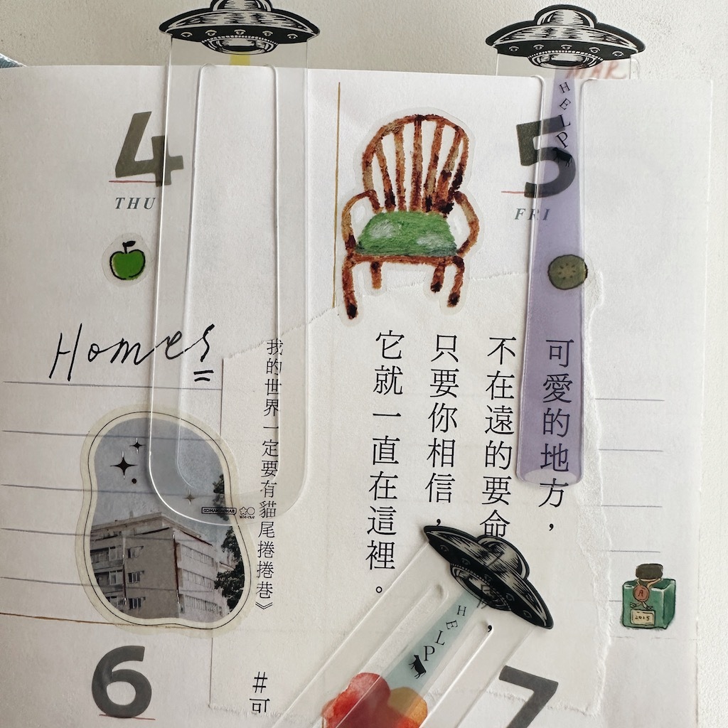 書本裡的UFO!螢光色透明材質的夾式書籤