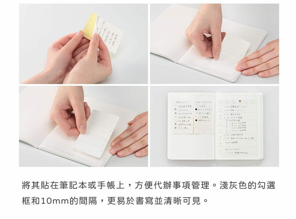 淺灰色的勾選框和10mm的間隔,可使代辦事項,更易於書寫並清晰可見。