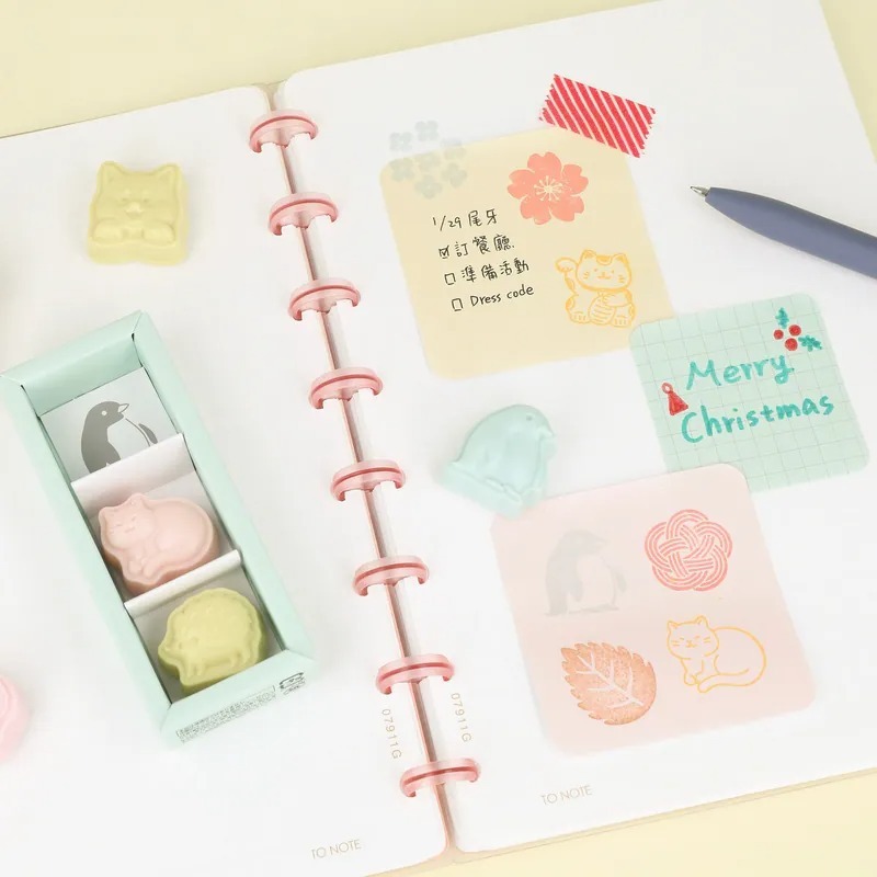 企鵝/貓/刺蝟 日系和果子印章 3入組|日本SUN-STAR