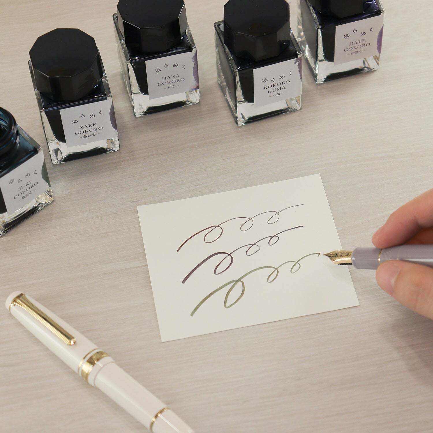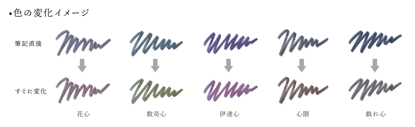 YURAMEKU INK 暈染墨水,顏色會隨時間長短和書寫紙張材質不同而改變。